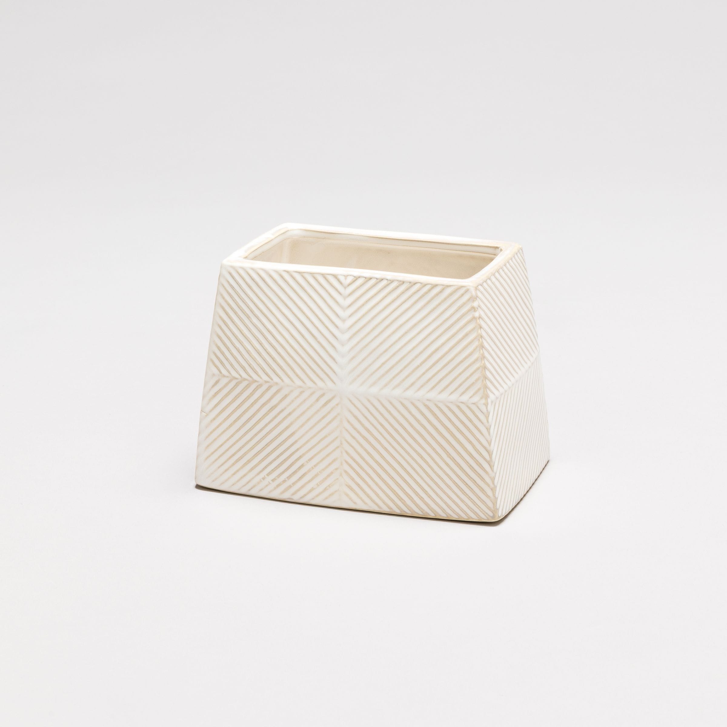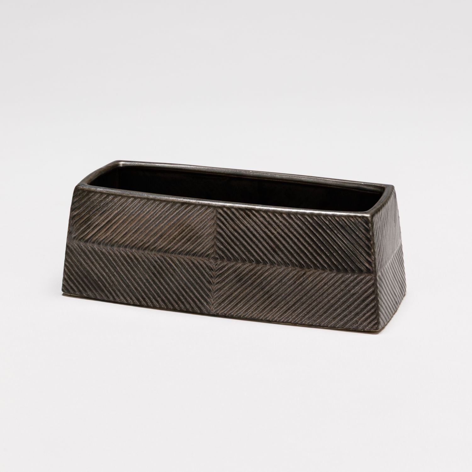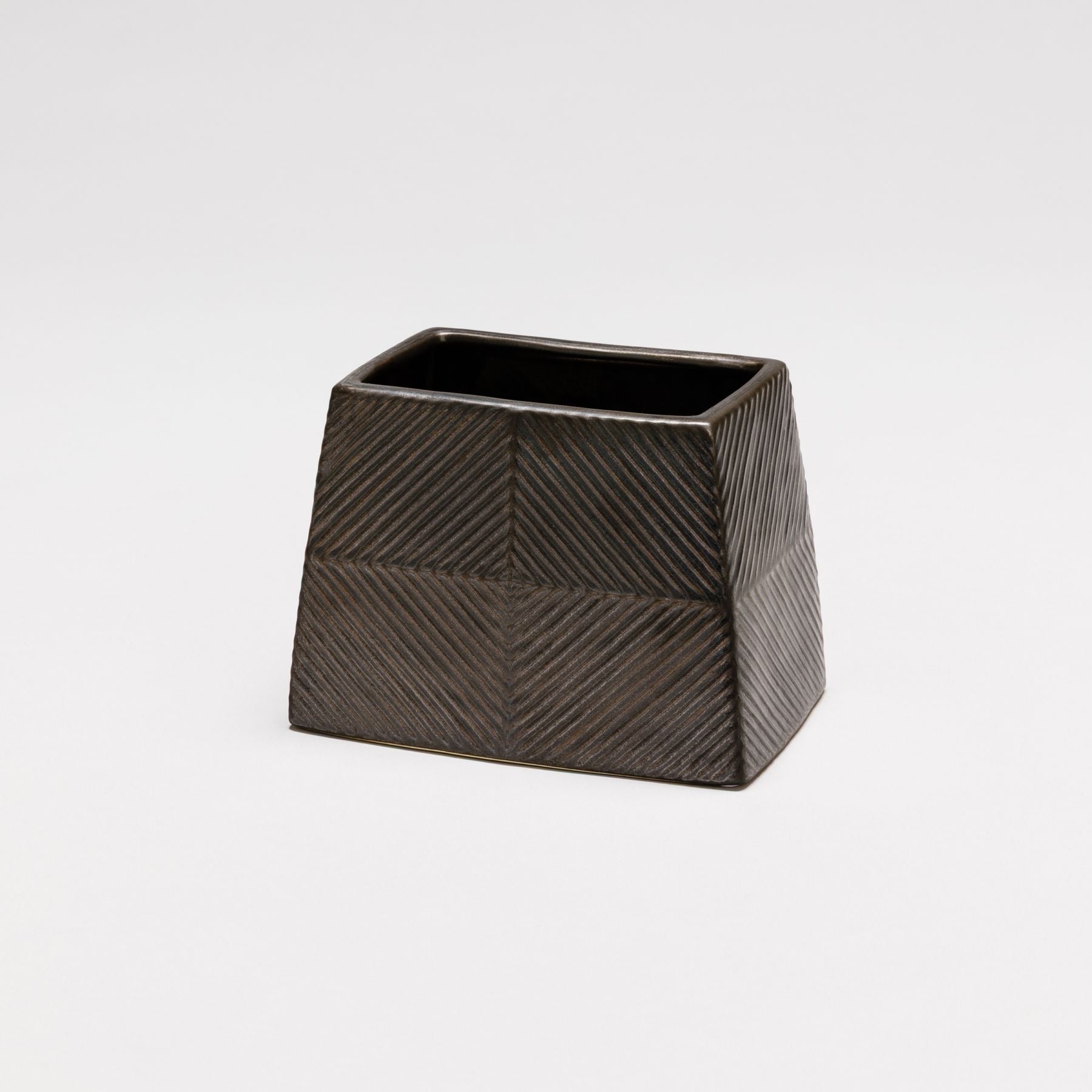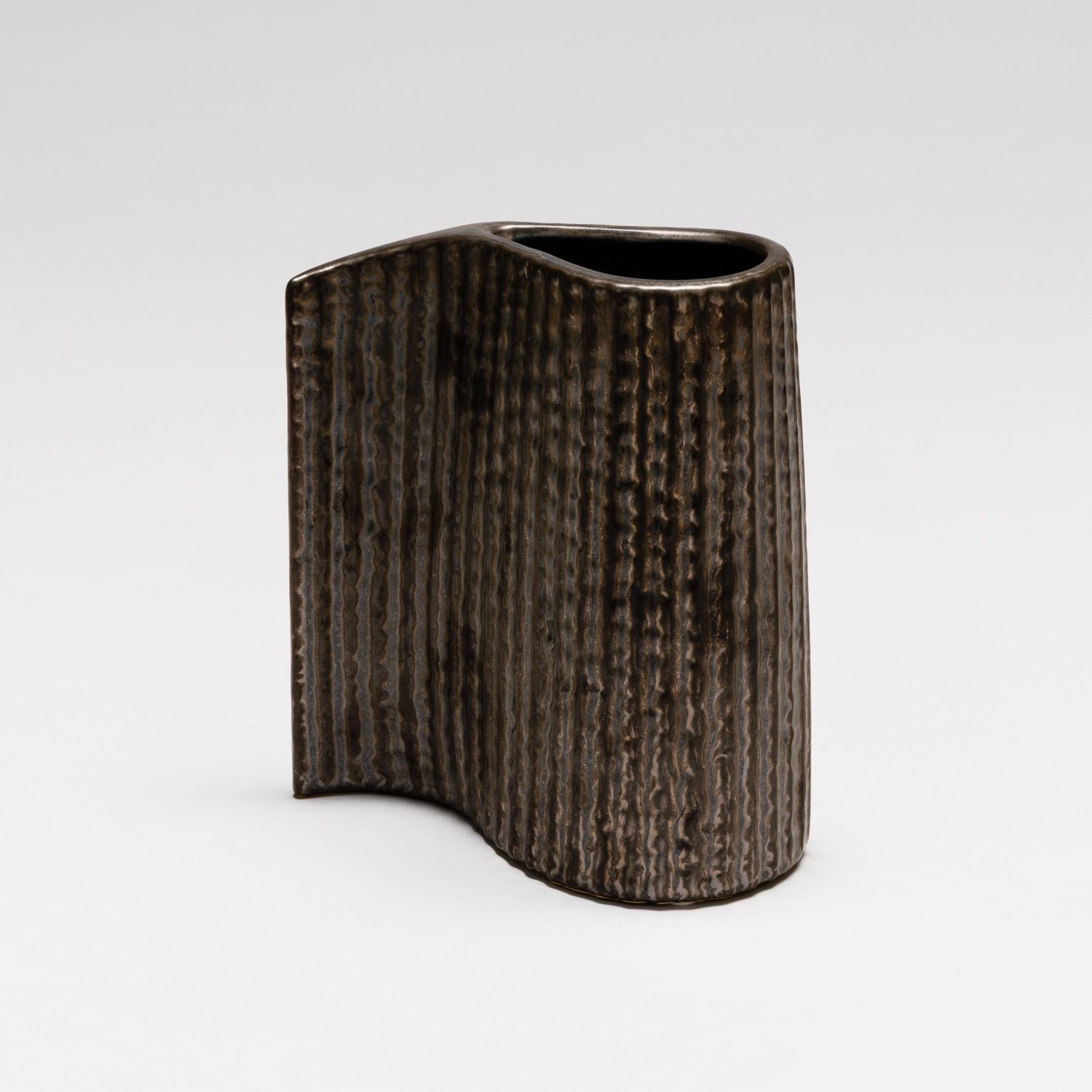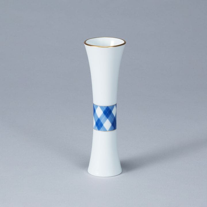 編み込んだような模様が特徴の、アルミニウム製のベースで軽量(約640g)ながらも存在感のある花器です。